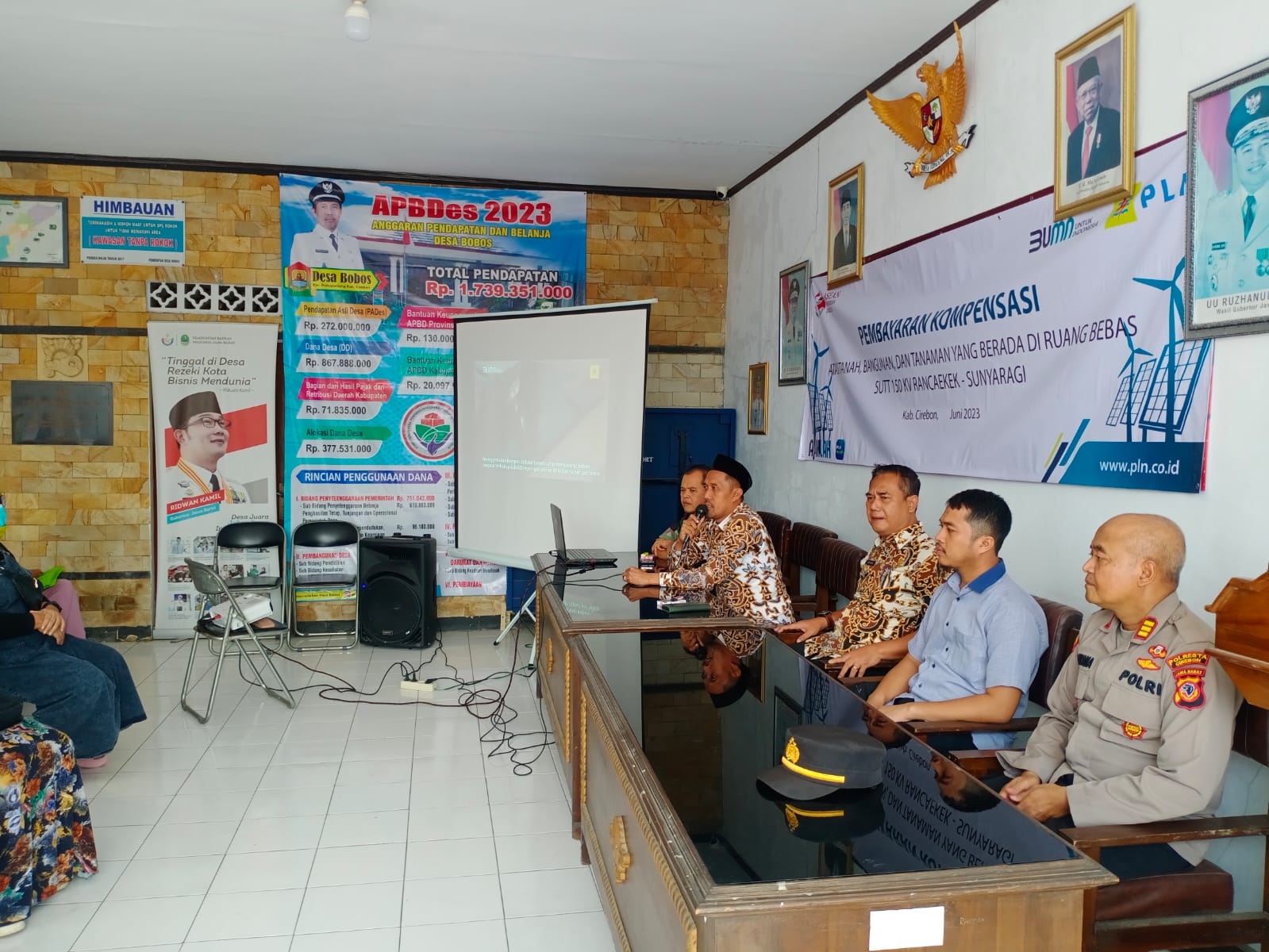 Kapolresta Cirebon Kombes Pol. Arif Budiman, S.I.K., M.H melalui Kapolsek Dukupuntang AKP Nuryana menyampaikan bahwa Kami menghadiri undangan dari Desa Bobos, dalam rangka kegiatan pembayaran kompensasi untuk warga yang terkena imbas dari pemasangan SUTT 150 KV Rancaekek – Sunyaragi, adapun pembayaran kompensasi melalui rekening Bank BNI, selama kegiatan berlangsung aman kondusif.