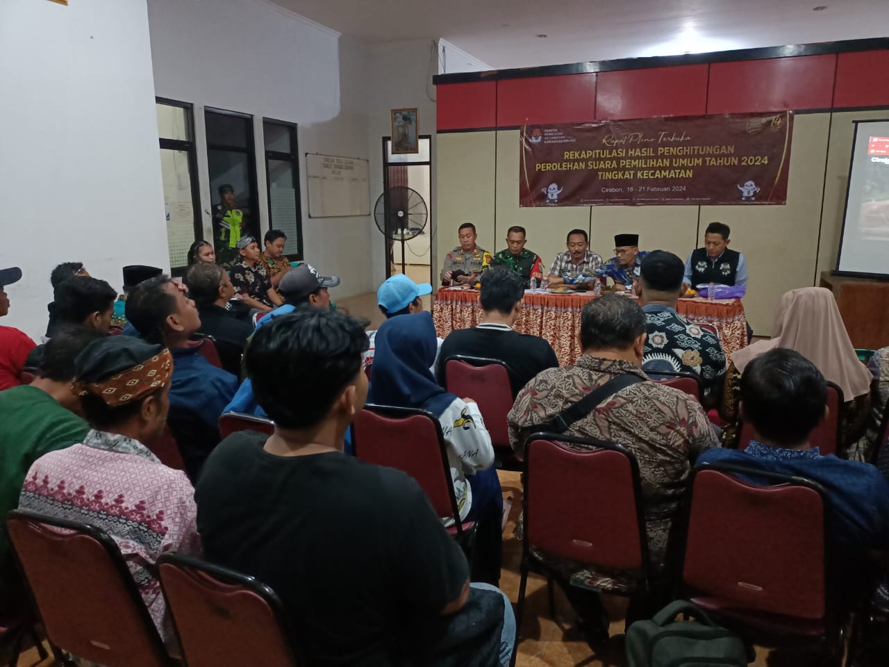 Karangsembung– Kapolsek Karangsembung jajaran dari Polresta Cirebon Akp Agus hermawan.,SH bersama unsur Forkopimcam Kecamatan Karangsembung menghadiri penutupan rapat pleno terbuka pemilu tahun 2024 PPK Karangsembung, Selasa malam (20/02/2024)