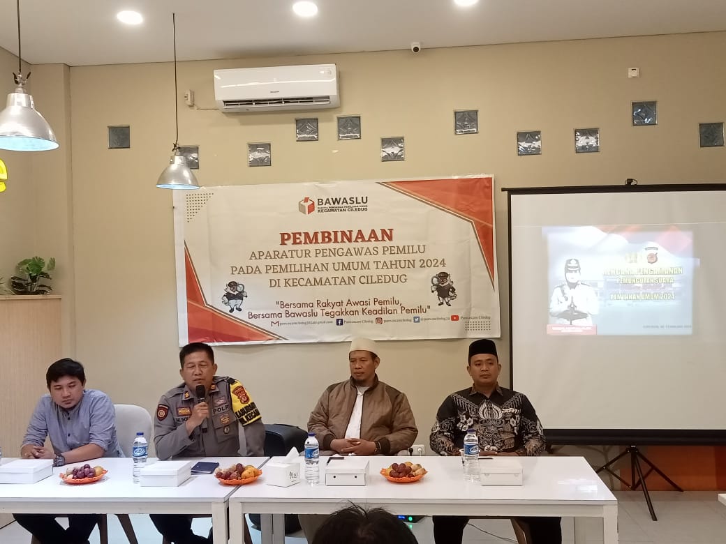 CIREBON – Dalam rangka mensukseskan Pemilu 2024 Kapolsek Pabuaran AKP Much. Soleh, SH., menghadiri acara pembinaan Aparatur Pengawas Pemilu 2024, yang diselenggarakan oleh Panwascam Kec. Ciledug Kab. Cirebon. Acara tersebut dilaksanakan di Complete Me Desa Ciledug Kulon Kec. Ciledug Kab. Cirebon. C