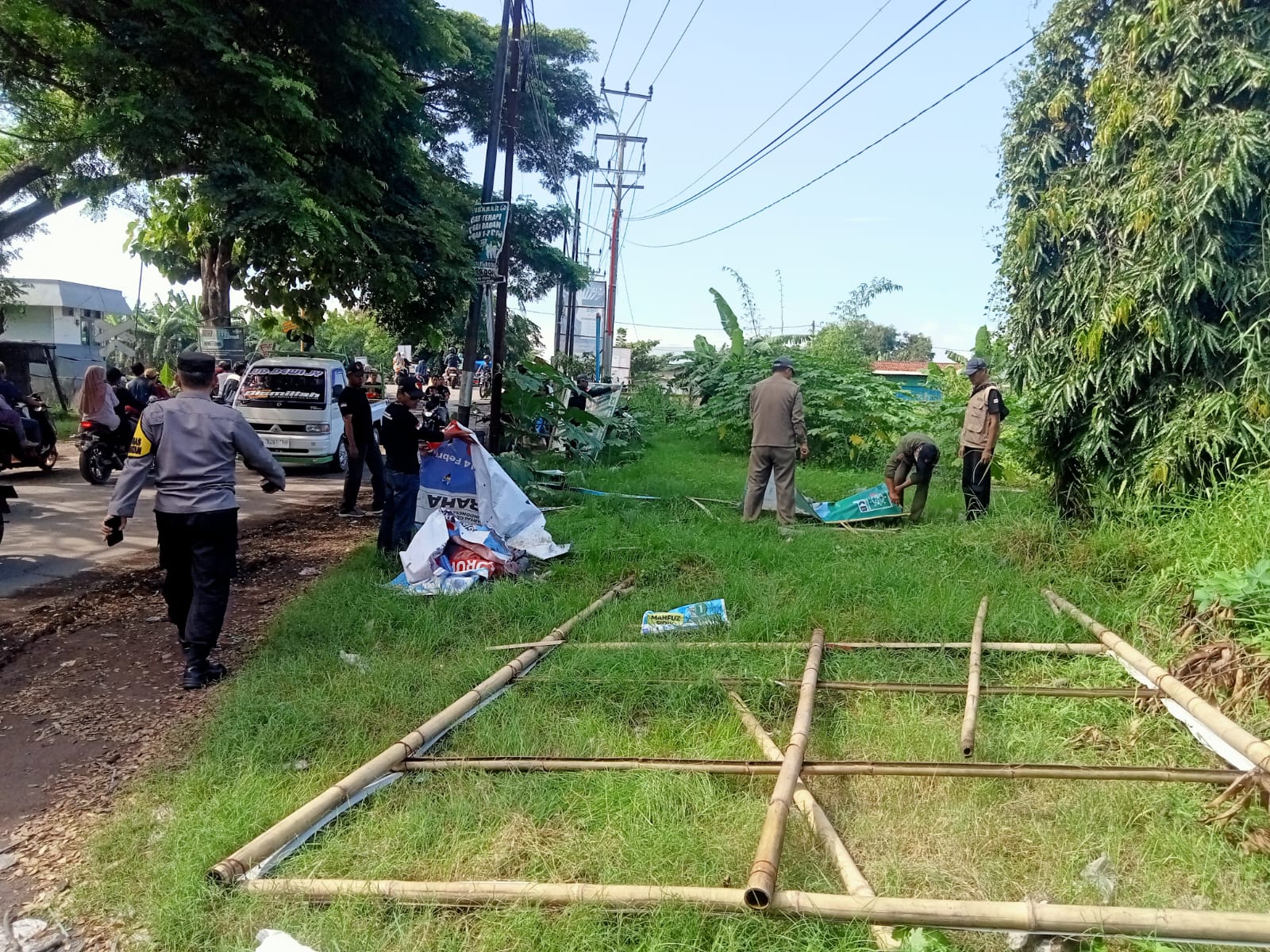 CIREBON – Polsek Pabuaran Polresta Cirebon melaksanakan pengamanan dan pendampingan penertiban Alat Peraga Sosialisasi (APS), Alat Peraga Kampanye (APK) dan Bendera Parpol peserta Pemilu 2024 di wilayah Kecamatan Pabuaran Kab. Cirebon, yang digelar oleh Panwaslu dan Pol PP Pabuaran Kab. Cirebon. Pada Minggu, 11 Februari 2024. mulai pukul 09.00 wib.