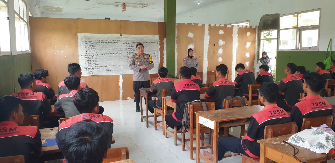 Plered,- Pada hari Rabu, 21 Februari 2024, Kapolsek Klangenan, AKP Uton Suhartono, SH. di dampingi Waka Polsek Plered Iptu Rosewita Dewi dan Kanit Binmas, Aiptu Sulaiman dan Aiptu Sindhu Utomo SH, melaksanakan kegiatan edukasi di kelas 12 SMK Abu Mansur, Desa Kaliwulu Kecamatan Plered Kabupaten Cirebon. Edukasi ini bertujuan untuk memberikan pemahaman kepada siswa-siswi tentang kenakalan remaja, penggunaan media sosial yang bijak, serta larangan penggunaan knalpot yang tidak sesuai dengan spesifikasi / penggunaannya. Kamis,- (22/02/2024)