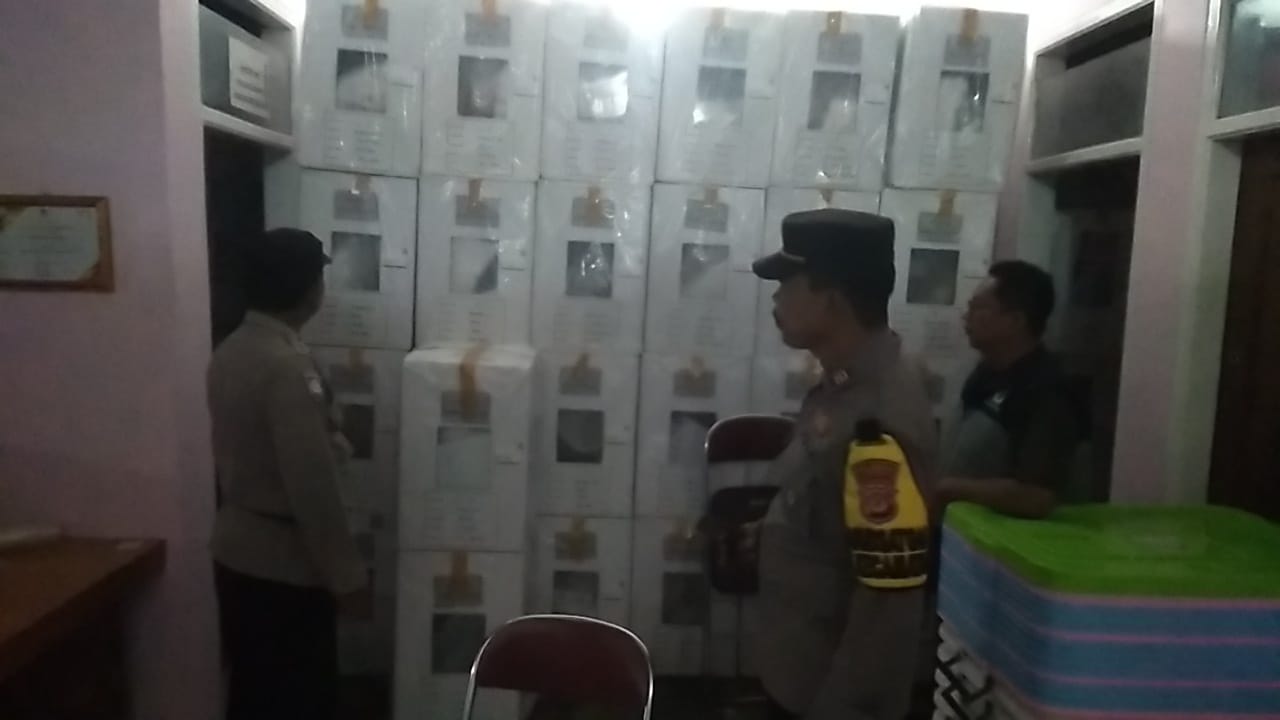 Cirebon – Kapolsek Sedong AKP Ujang Sarifudin, SH. beserta anggotanya mengecek logistik pemilu di gudang logistik PPK Kec. Sedong Kab. Cirebon, wilayah hukum Polsek Sedong Polresta Cirebon. Sabtu malam. (10/02/2024)