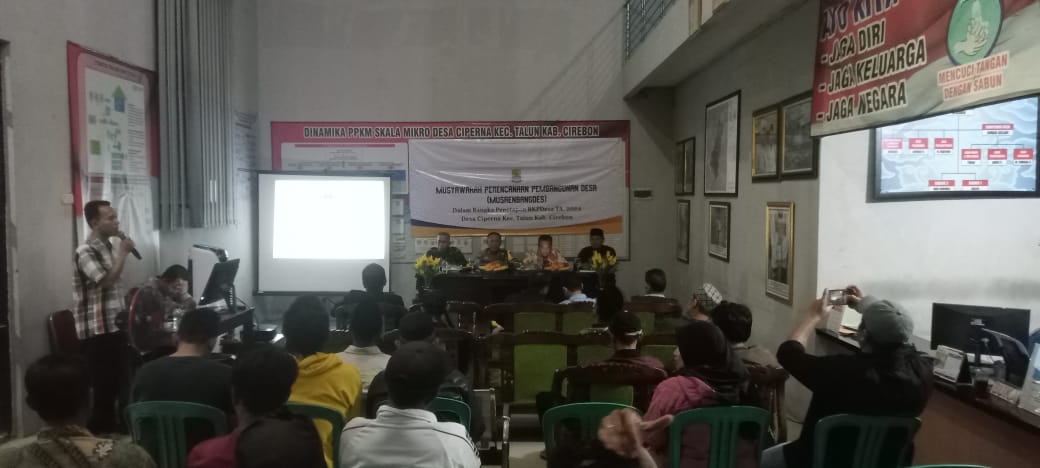 Cirebon – Pada hari Kamis tanggal 25 Pkl. 20.00 Wib Tepatnya di Balai Ds. Ciperna Kec. Talun Kab. Cirebon adanya kegiatan Musrenbangdes yang dihadiri oleh Forkopincam Kec. Talun dan elemen masyarakat Ds. Ciperna. (26/01/2024 )