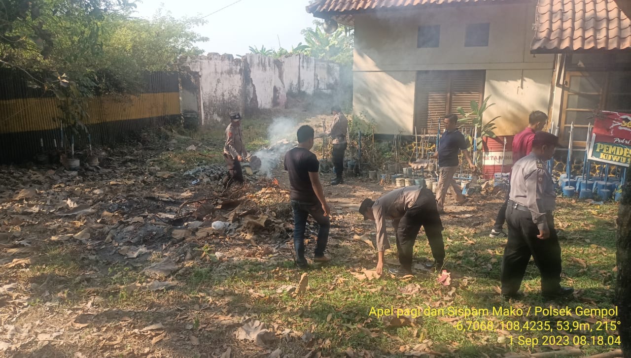 Setelah kegiatan Apel pagi kemudian dilaksanakan Kegiatan jumsih (jum’at bersih) Polsek Gempol dipimpin Oleh Kanit Provos Polsek Gempol Aiptu Agus Susanto diikuti Oleh seluruh Anggota Polsek Gempol, Kegiatan jum’at bersih kali ini merupakan wujud implementasi dan konsensus Polsek Gempol dalam menjaga kebersihan dengan harapan sampah maupun lainya tidak menutup aliran sehingga tidak menyebabkan banjir di sekitaran Mako Polsek Gempol – Polresta Cirebon. Jum’at (01/09/2023) Jam 08.30 WIB.