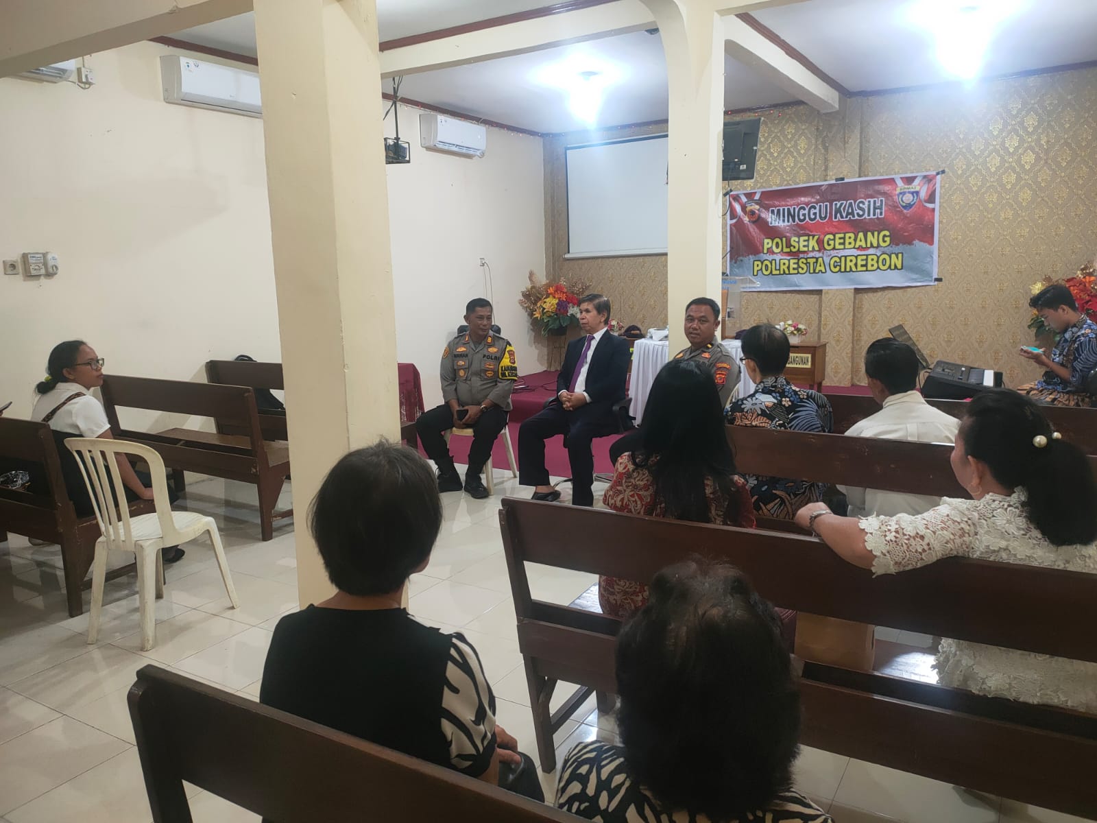 Dalam kegiatan Minggu Kasih Bersama Kapolsek Gebang dengan Umat Kristiani dan diisi dengan kegiatan silaturahmi kamtibmas, diskusi tentang situasi kamtibmas khususnya di Wilayah Kec. Gebang Kab Cirebon.