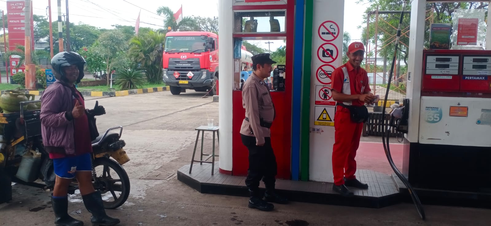 dialogis dengan karyawan Spbu Desa Bendungan Kecamatan Pangenan sampaikan pesan Kamtibmas, Selasa, (20/02/2024)