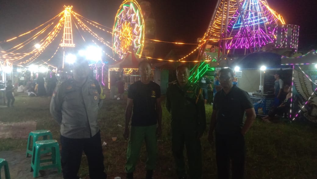 Aiptu Sudarmono bersama kasi trantib dan linmas yang melakukan pengamanan dan patroli di lokasi pun memberikan himbauan serta mengingatkannpara pengunjung untuk berhati-hati di setiap wahana.