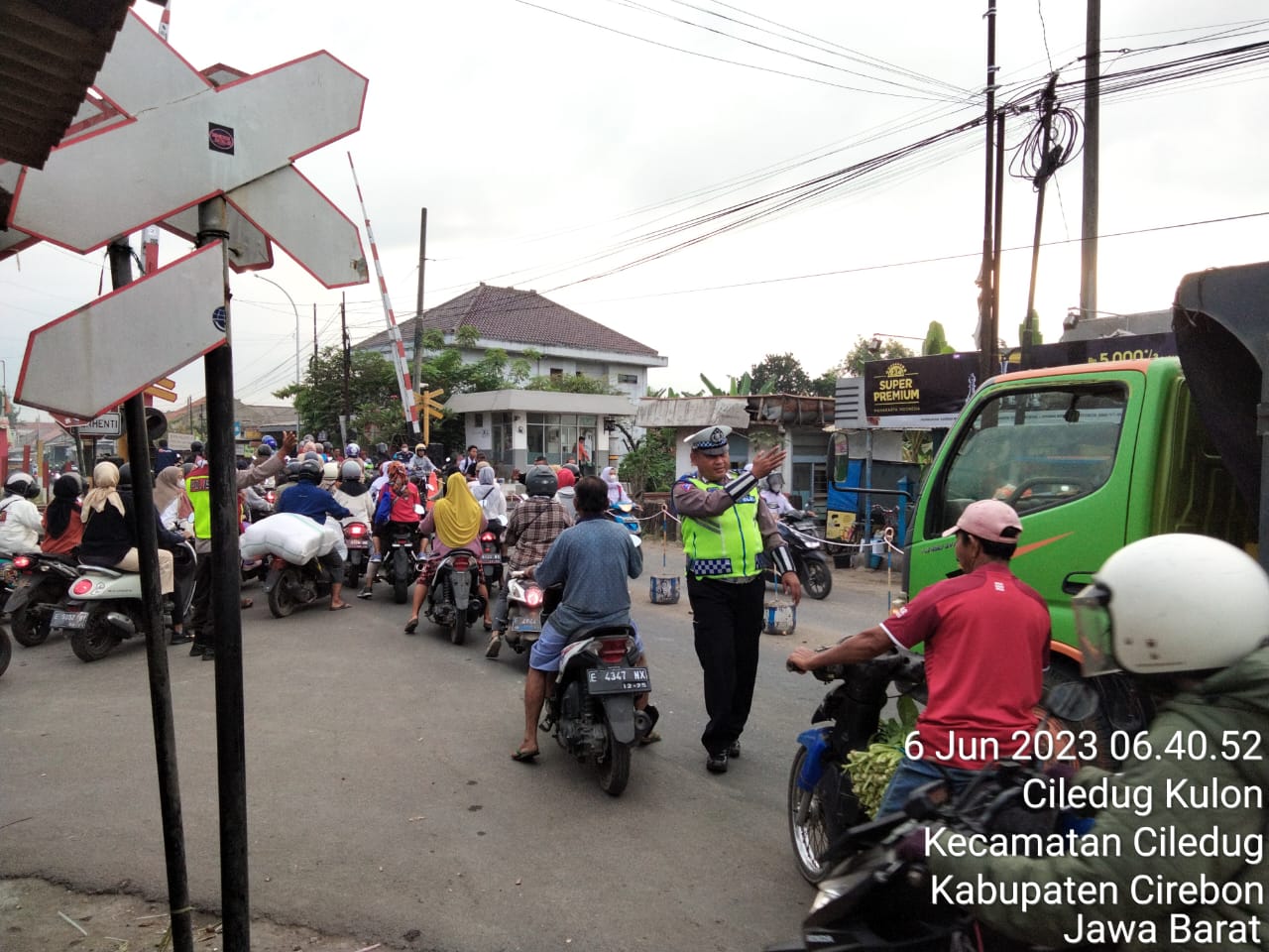 Dan giat pelayanan siang hari tersebut diimplementasikan dalam bentuk kegiatan kepolisian berupa pengaturan lalu lintas tersebut, polsek Pabuaran dipimipin oleh Aiptu Kurnia dan Bripka Sophian Anggota lantas. pada hari Selasa tanggal 06 Juni 2023 , pagi hari melaksanakan pengaturan lalu lintas di Lintasan Rel Ka Ciledug Kulon dalam kegiatan tersebut personel polsek Pabuaran membantu karyawan Pabrik,yang mau berangkat kerja dalam menyebrang jalan hal tersebut bertujuan untuk mencegah kecelakaan lalu lintas serta mencegah kemacetan arus lalulintas.