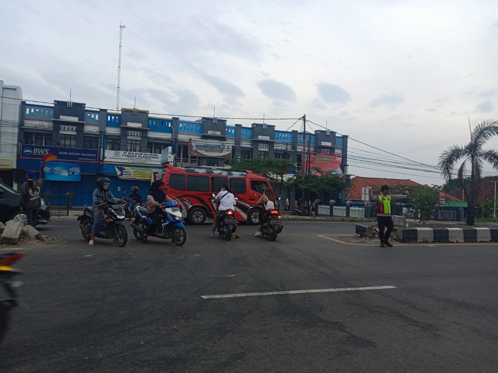 Kegiatan pengamanan jalur pada pagi ini dilakukan personil Jaga Polsek Klangenan Polresta Cirebon di simpang empat Pasar Minggu – jln Otista Klangenan pada Selasa, (22/08/2023).
