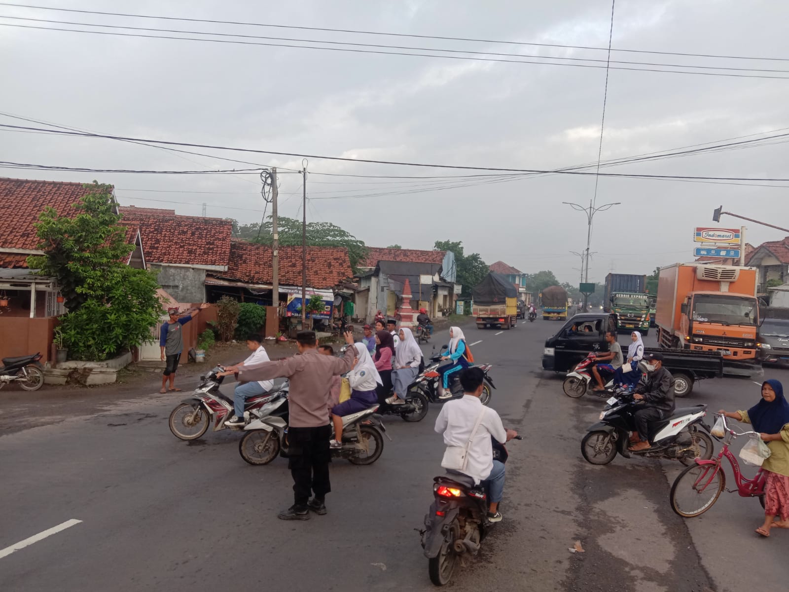 Jajaran Personil Polsek Susukan Polresta Cirebon Polda Jabar, melaksanakan Gatur Lalu lintas pagi di perempatan bunder Kec Susukan Kab Cirebon.