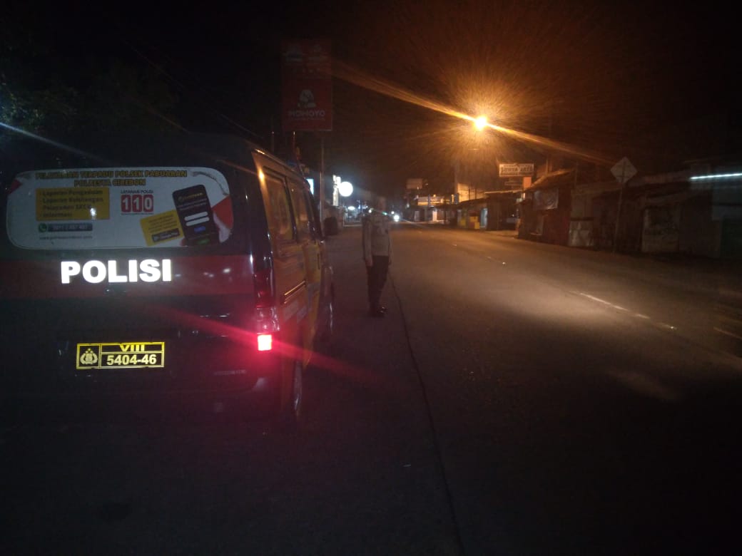 Giat Kepolisian dlm rangka cegah tangkal gangguan Kamtibmas, antisipasi C3, Genk motor dan tawuran menyampaikan himbauan kamtibmas dan mengajak berperan aktif memberikan informasi kamtibmas kepada warga dan anak-anak muda yang nongkrong agar segera membubarkan diri .