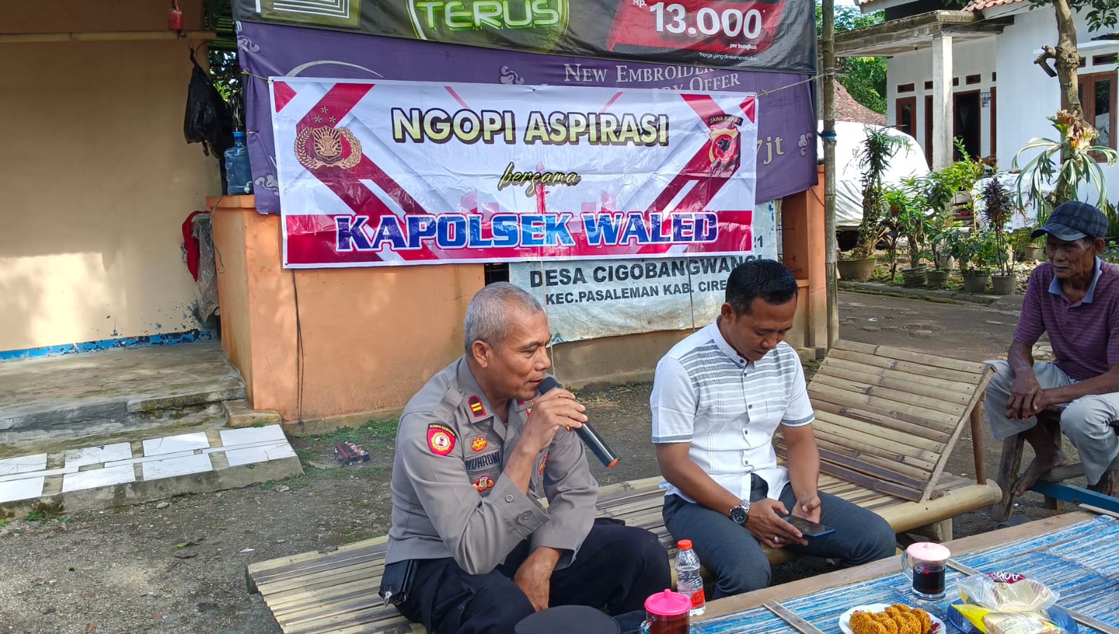 Kapolresta Cirebon KOMBES POL ARIF BUDIMAN SIK MH melalui Kapolsek Waled AKP KENTAR BUDI SEDIYONO SH menjelaskan bahwa Polri harus selalu hadir di tengah tengah masyarakat di antaranya melalui ngopi aspirasi Jumat curhat adalah program Kapolri yang harus kita dukung dan ngopi aspirasi Jumat curhat bertujuan mendengar curhat secara langsung dari masyarakat terkait permasalahan yang terjadi dimasyarakat dan tugas kita adalah segera merespon nya, dan diharapkan dengan jumat curhat tersebut bisa mendekatkan aparat Kepolisian dengan masyarakat.