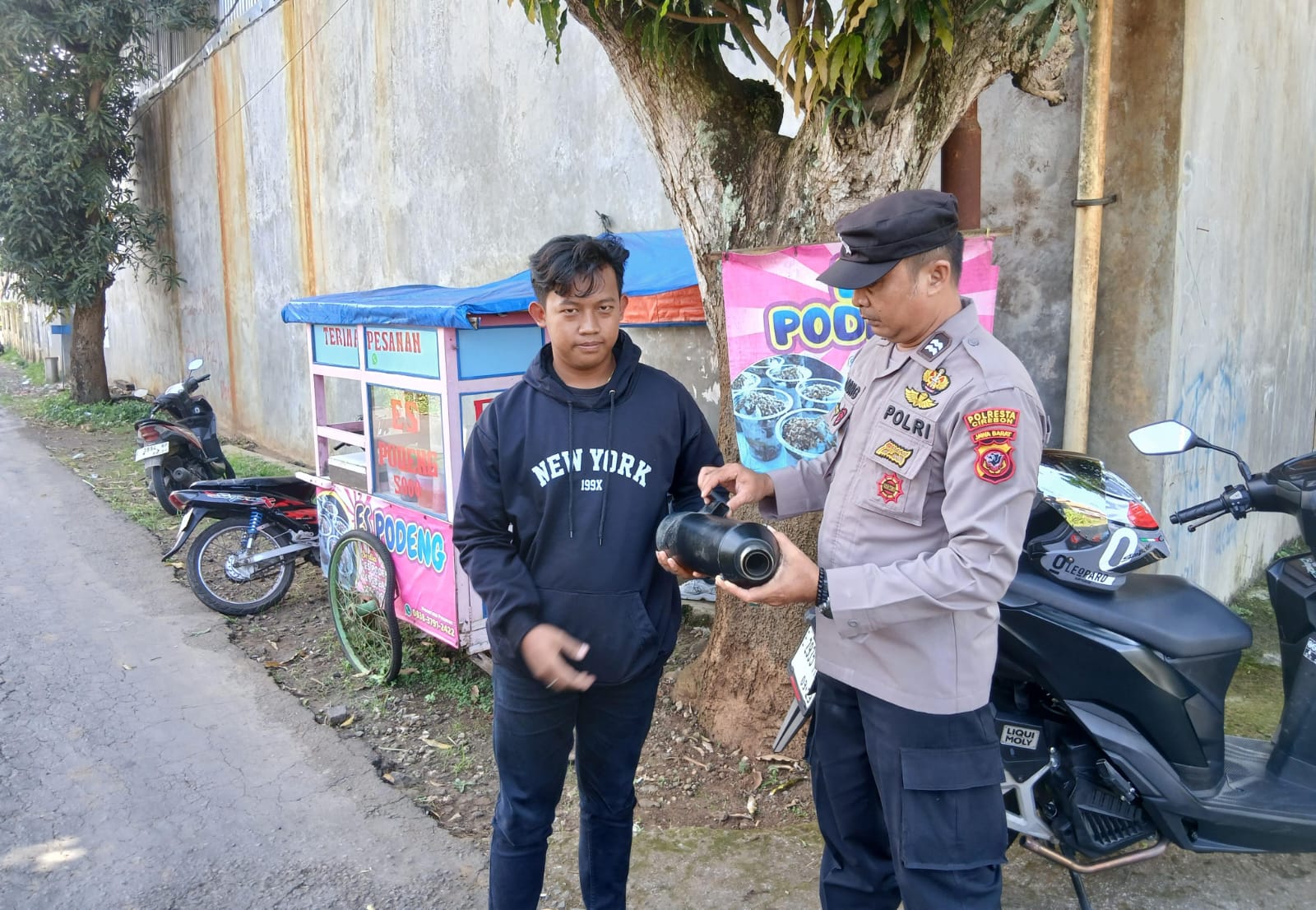 Beber, Cirebon – Dalam rangka menciptakan ketertiban dan kenyamanan masyarakat, Polsek Beber Polresta Cirebon melaksanakan kegiatan Operasi Pekat dengan sasaran knalpot tidak sesuai spesifikasi teknis (knalpot brong), Minggu (26/04/2026) sekitar pukul 14.30 WIB di wilayah Kecamatan Beber.
