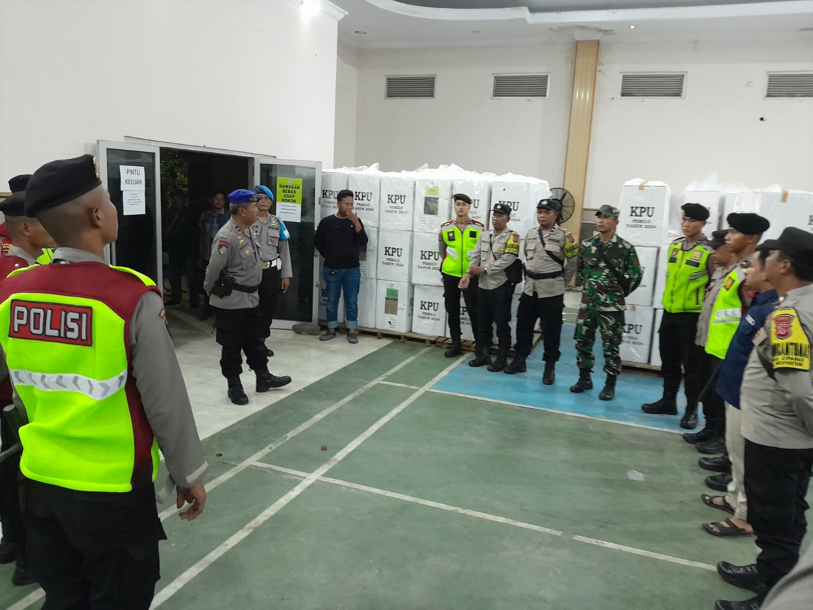 Dukupuntang – Minggu malam (18/02/2024) Personil Polresta Cirebon dibawah pimpinan Kasat Sabhara Polresta Cirebon Kompol Endang Sujana, S.H beserta Pawas dan Anggota melakukan pengontrolan terhadap gudang logistik Pemilu Tahun 2024 PPK Dukupuntang yang berada di GOR Kartini Desa Bobos.