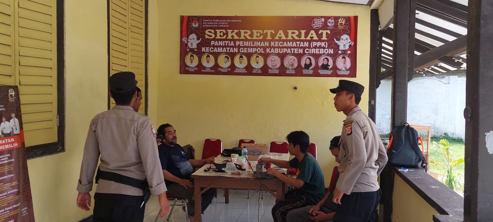 Polsek Gempol jajaran Polresta Cirebon Polda Jabar melaksanakan patroli sambang di gudang logistik milik Komisi Pemilihan Umum (KPU) Kabupaten Cirebon yang berada di wilayah hukum Polsek Gempol, selasa (06/02/2024)