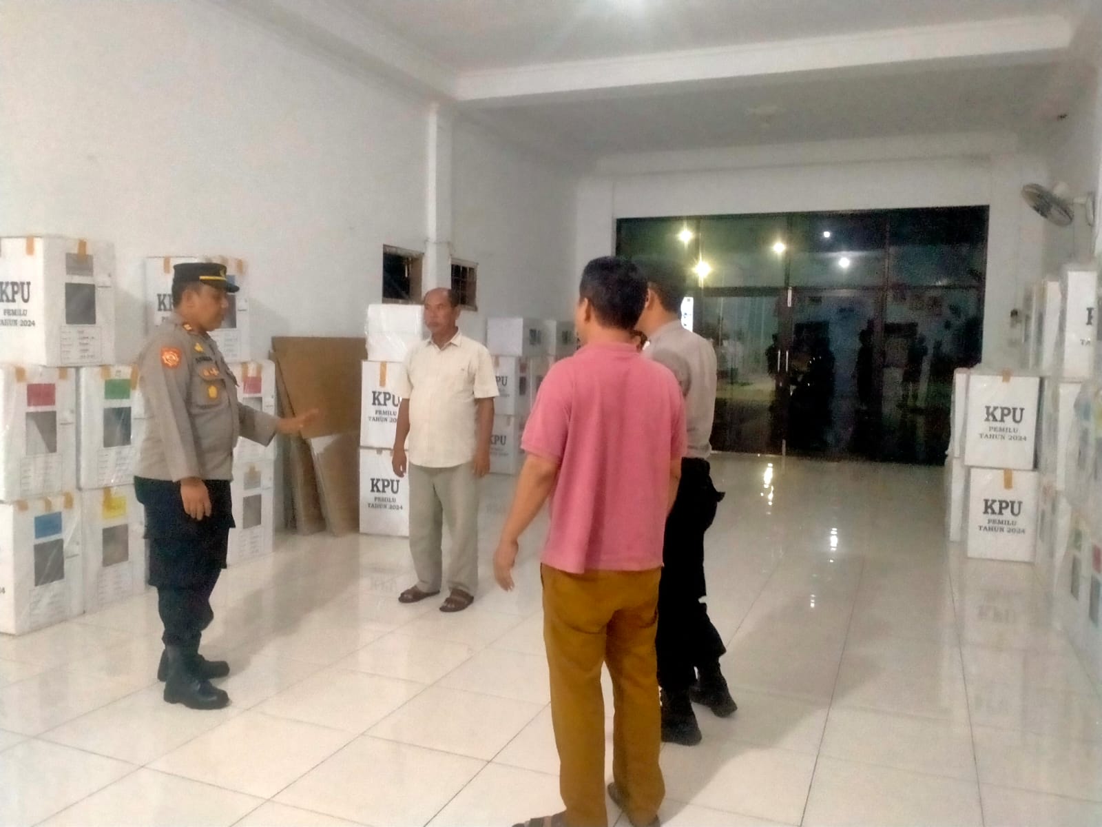 “Hasil pengecekan didapati gudang logistik Pemilu dalam keadaan aman, terkunci dan tersegel serta anggota linmas di bantu para Bhabinkamtibmas dan Babinsa tetap siap dan siaga di lokasi,” tandasnya.