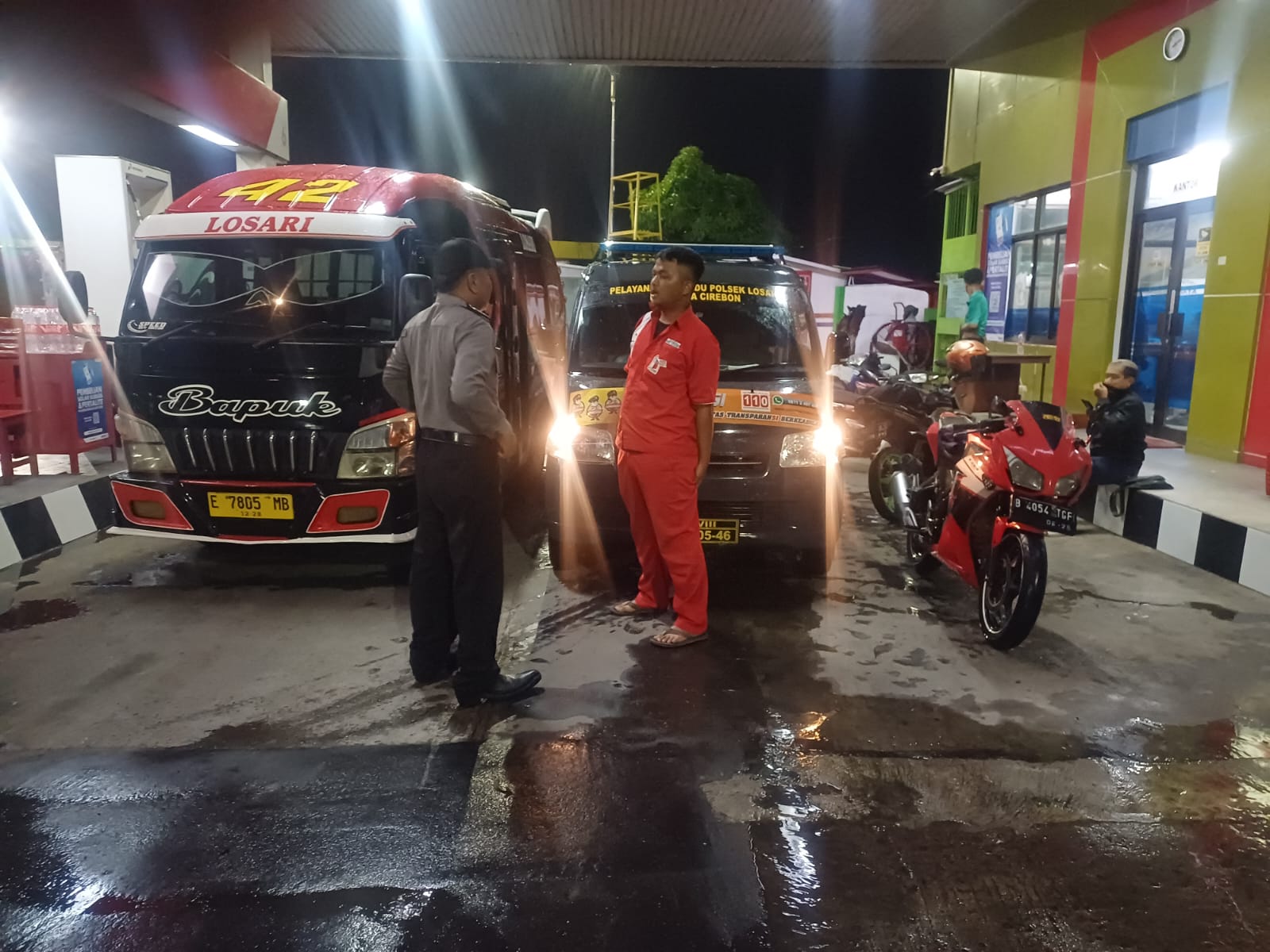 KAB. CIREBON – Personil Unit Sabhara Polsek losari melaksanakan patroli dialogis di SPBU Losari atau stasiun pengisian bahan bakar yang ada di wilayah hukum Polsek losari untuk mencegah tindak kejahatan yang mungkin terjadi diwilayah Kecamatan Losari.