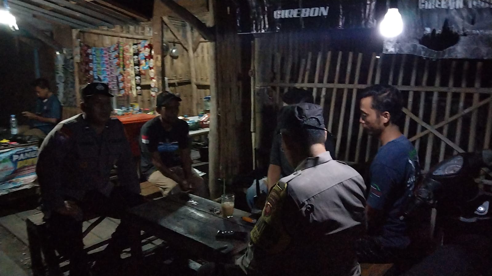 Sumber- Piket Patroli Polsek Sumber Polresta Cirebon Aiptu Sunadi dan Aipda Lungguh terlihat memberikan himbauan kamtibmas kepada Warga dan kelompok pemuda yang sedang nongkrong di Pinggir Jalan Ki Bagus Rangin termasuk Kel Pejambon Kec Sumber Kabupaten Cirebon (6/10/2023)
