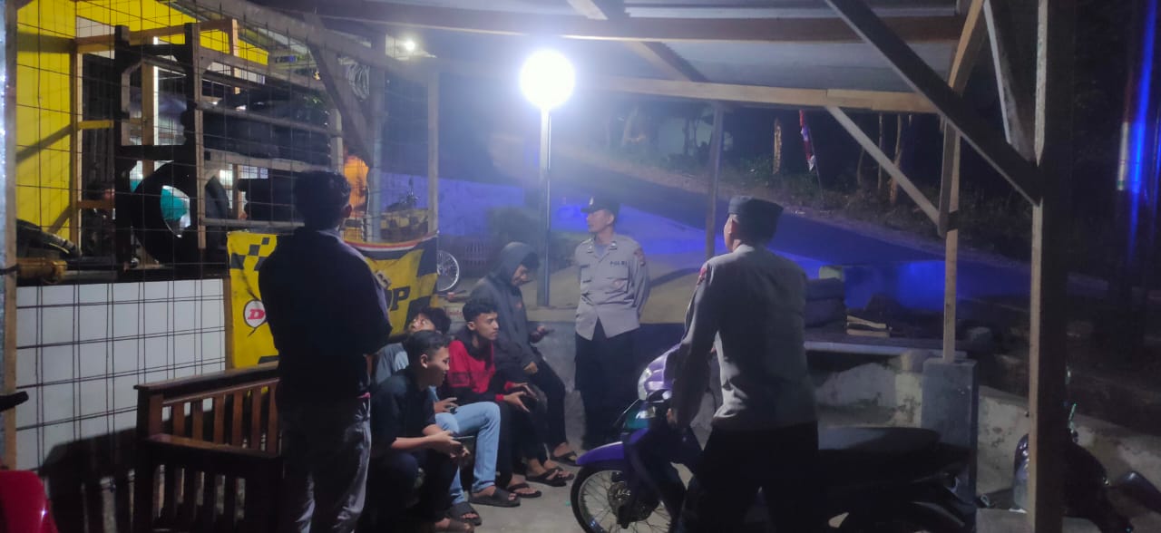 Saat berada di desa Cipinang tersebut kanit Binmas beserta KSPKT dan piket reskrim sambangi para pemuda yang sedang nongkrong di sebuah bengkel yang memang buka sampi larut malam.