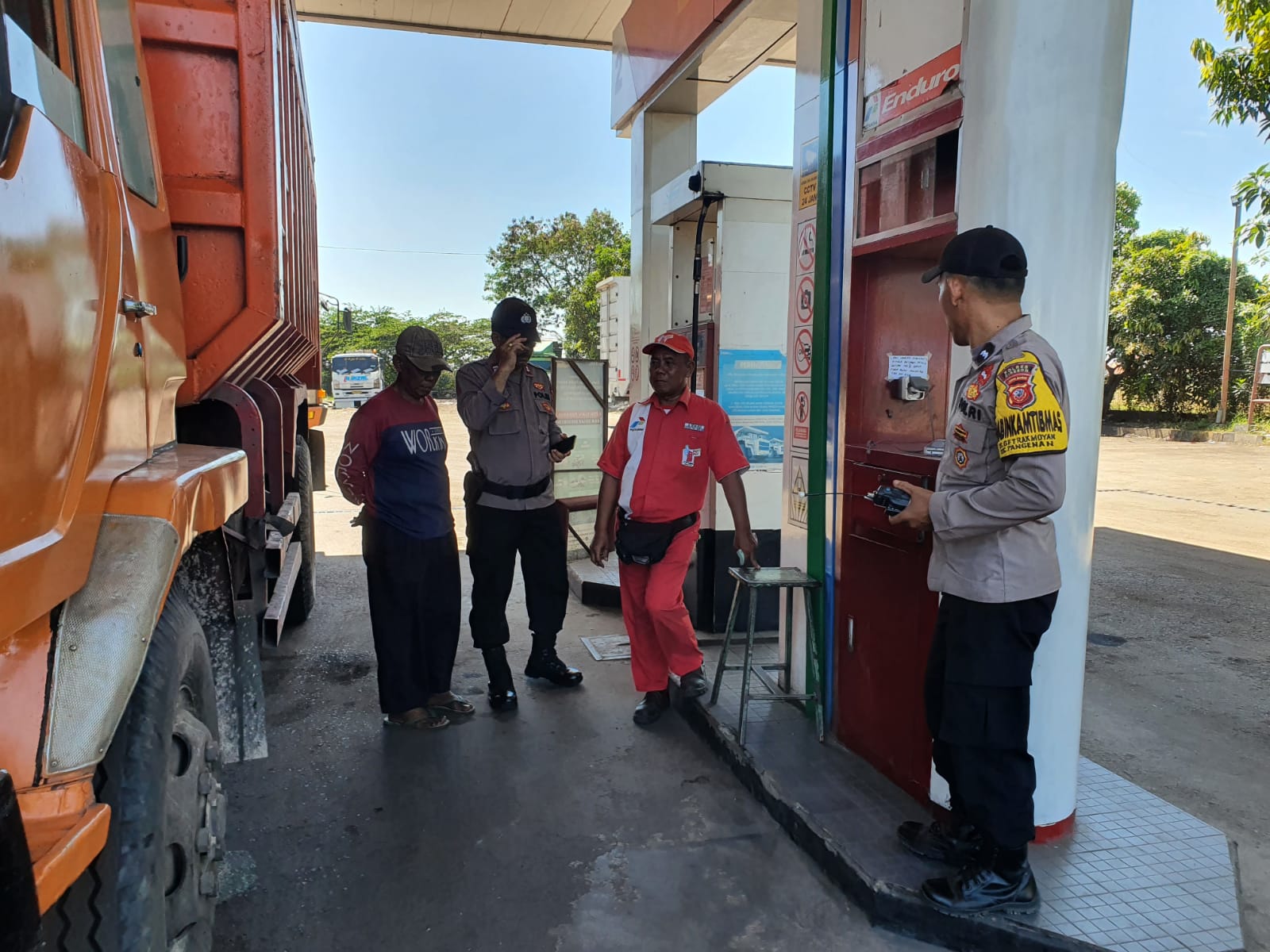 Pada kesempatan ini Patroli Polsek Pangenan yang diawaki oleh AIPTU DEWA. P.G.E dengan AIPDA MOCH SYAPUDIN melakukan patroli dialogis dengan karyawan SPBU di lokasi yang berada di DESA Astanamukti Kecamatan Pangenan Kab Cirebon dan menyampaikan pesan kamtibmas untuk selalu waspada kepada pegawai spbu