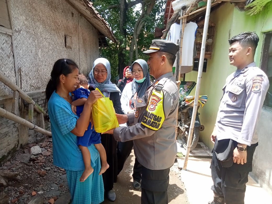 CIREBON – Kapolsek Pabuaran Polresta Cirebon AKP Much. Soleh, SH. bersama anggotanya didampingi Bidan Desa Sdri. Fuji Asriyanti, AMd Keb. dan Kader Posyandu mengunjungi anak asuh stunting di Dusun 01 Rt. 002 Rw. 001 Desa Ciledug Wetan Kec. Ciledug Kab. Cirebon untuk memberikan makanan berupa sembako, susu, biskuit dan vitamin kepada Balita Stunting an. Hafidzah Ramadhan (1.6 tahun). Pemberian makanan tersebut bertujuan untuk menunjang tumbuh kembang anak stunting agar tumbuh sehat dan segera terhindar dari gizi buruk.