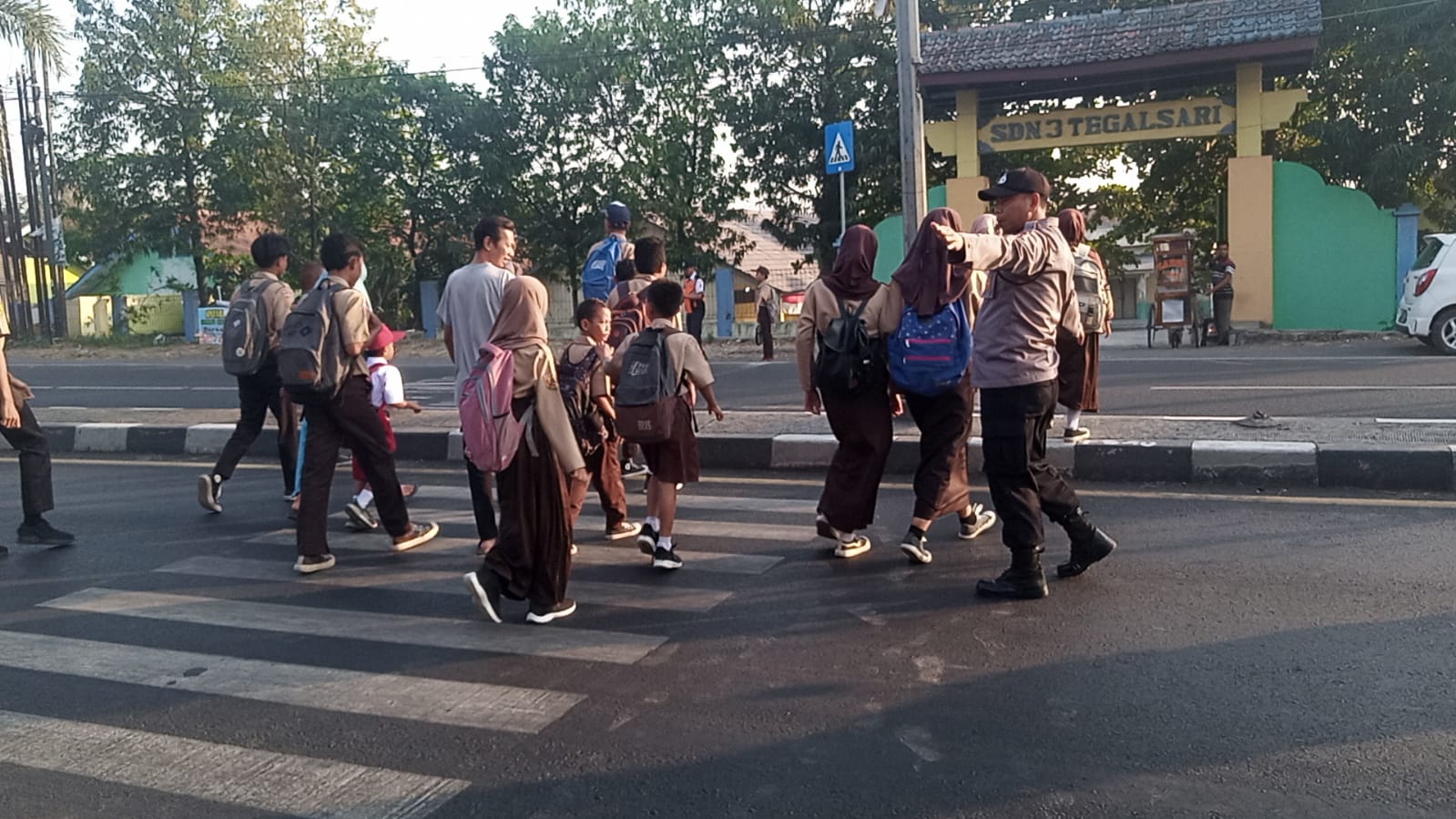Melaksanakan pengaturan lalu lintas di Jalan Raya Otista Tegalsari di depan SDN 3 Tegalsari dan SMPN 2 Plered, termasuk Desa Tegalsari Kec. Plered, adalah tempat penyebrangan (sebracros) anak anak sekolah di depan SDN 3 Tegalsari dan SMPN 2 Plered, dan masyarakat yang berangkat beraktifitas.