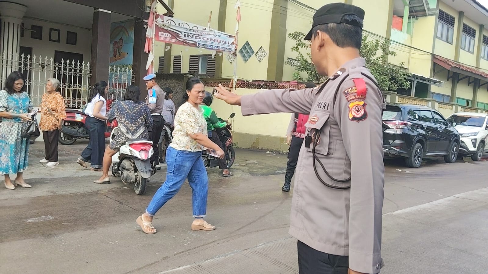 Selain melakukan penjagaan, petugas juga melaksanakan sterilisasi area gereja sebelum ibadah dimulai guna mengantisipasi potensi gangguan keamanan. Langkah tersebut dilakukan sebagai upaya preventif dalam menjaga situasi kamtibmas tetap kondusif.
