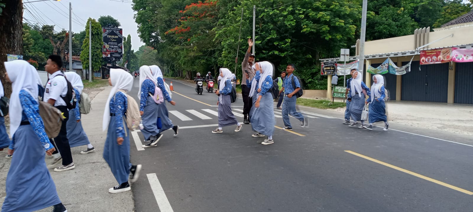 Personel Polsek Beber tampak sigap dan disiplin mengatur kendaraan yang melintas di area tersebut, mengatur pemberhentian kendaraan agar tidak terjadi kemacetan, serta memberikan arahan kepada pengendara untuk mematuhi peraturan lalu lintas. Selain itu, polisi juga memberikan edukasi singkat kepada pelajar mengenai pentingnya keselamatan berlalu lintas.