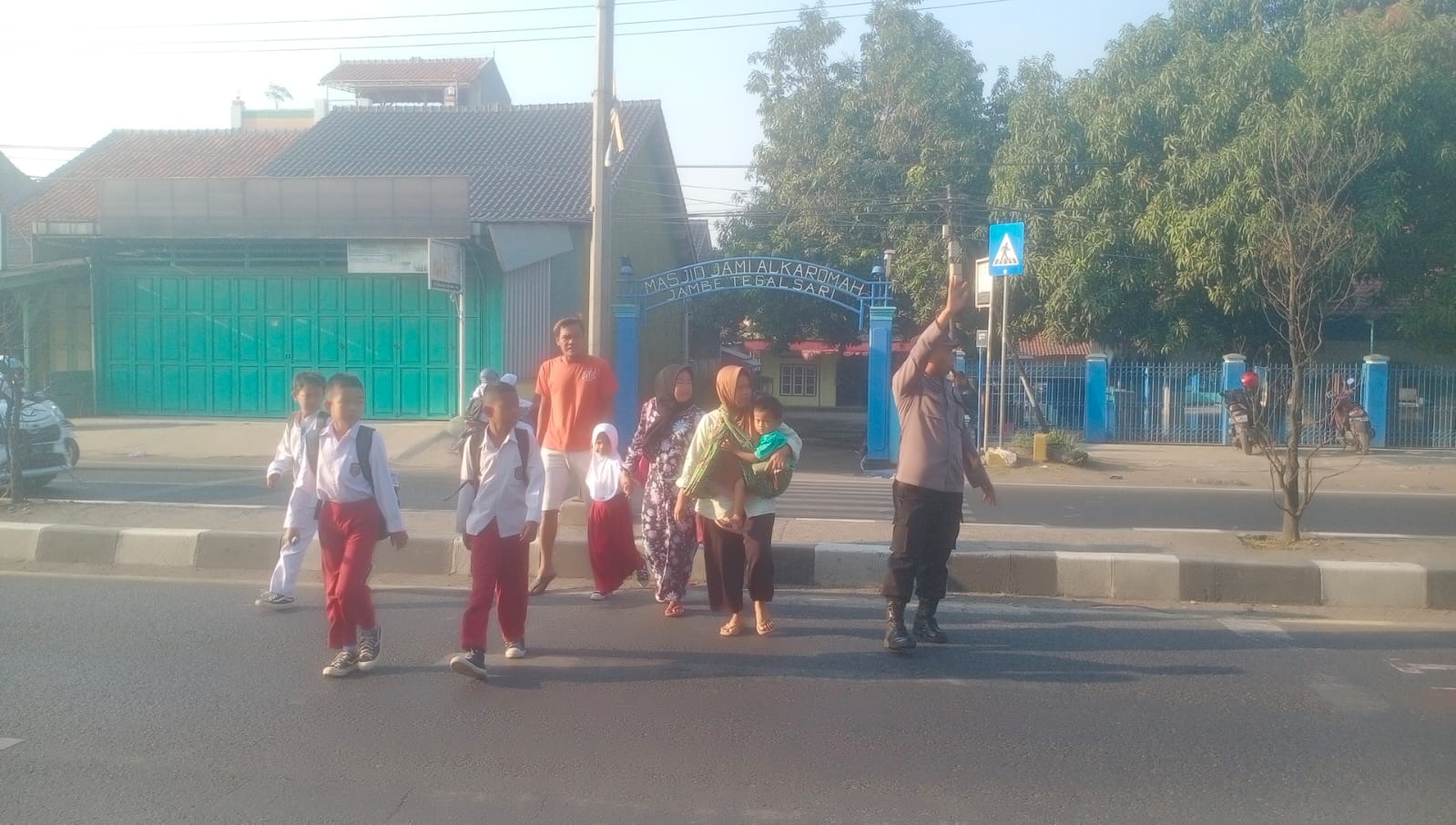 Personil Polsek Plered melaksanakan Gatur Lalu lintas pagi di Jln. Otista tepatnya depan SDN3 Tegalsari dan SMPN2 Plered Ds. Tegalsari Kecamatan Plered Kabupaten Cirebon.