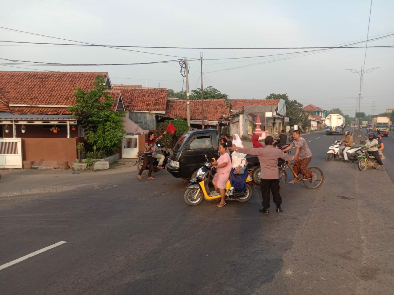Jajaran Personil Polsek Susukan Polresta Cirebon Polda Jabar, melaksanakan Gatur Lalu lintas pagi di perempatan bunder Kec Susukan Kab Cirebon.