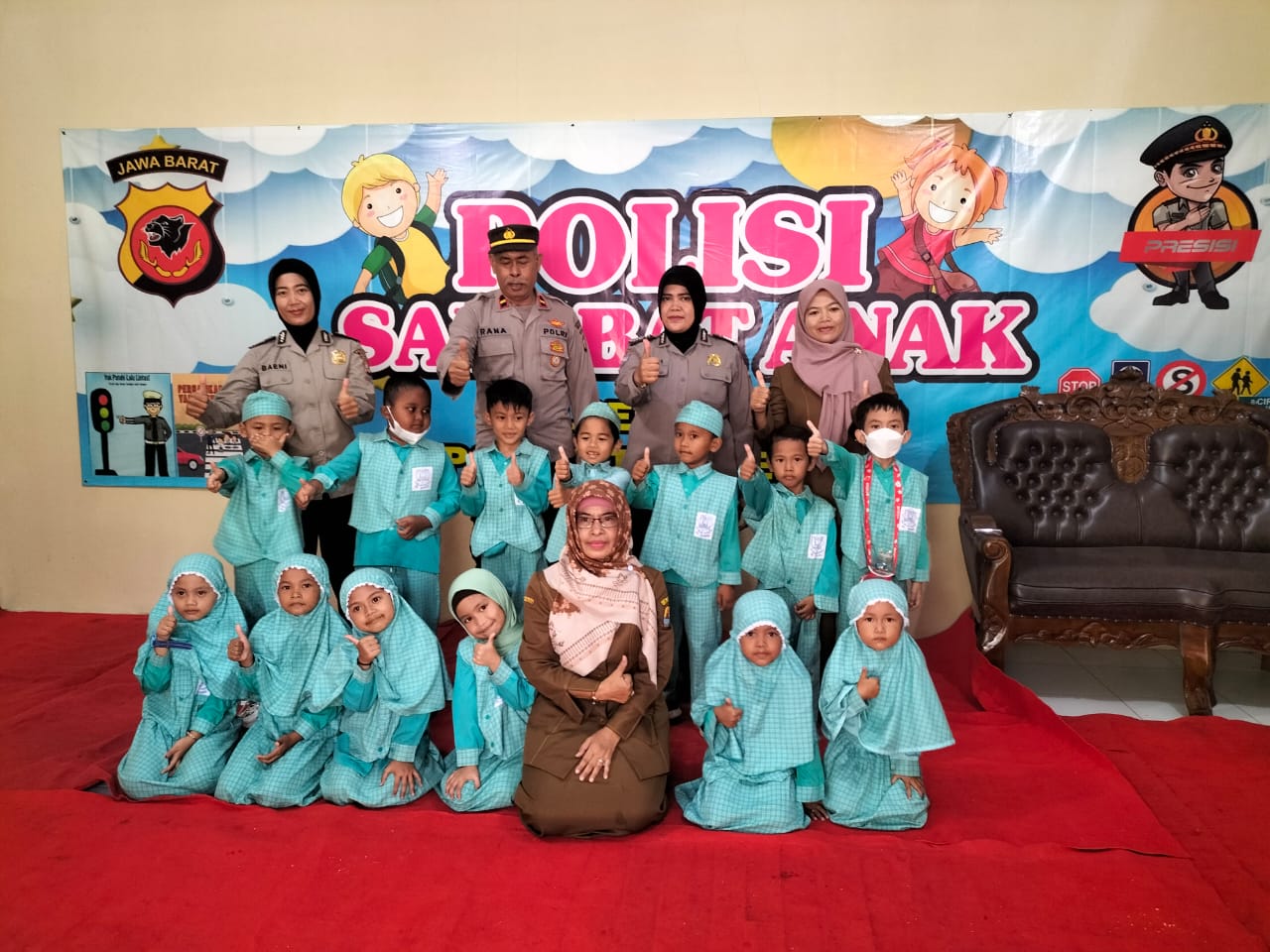 Dalam kunjungan tersebut tersebut diterima oleh Kanit Binmas IPDA RANA serta dalam kunjungan tersebut diberikan pengenalan tentang Polisi dengan tema “Polisi Sahabat Anak”. Dengan diperkenalkan dengan Tugas-tugas Polisi yaitu Melindungi, Mengayomi, Melayani masyarakat dan Penegakkan Hukum. Selain itu pengenalan lainnya seperti kantor Polisi, Ruangan- ruangan Pelayanan Polisi, ruangan Penjara, kendaraan Patroli dan lambang Polda Jabar Macan Kumbang.
