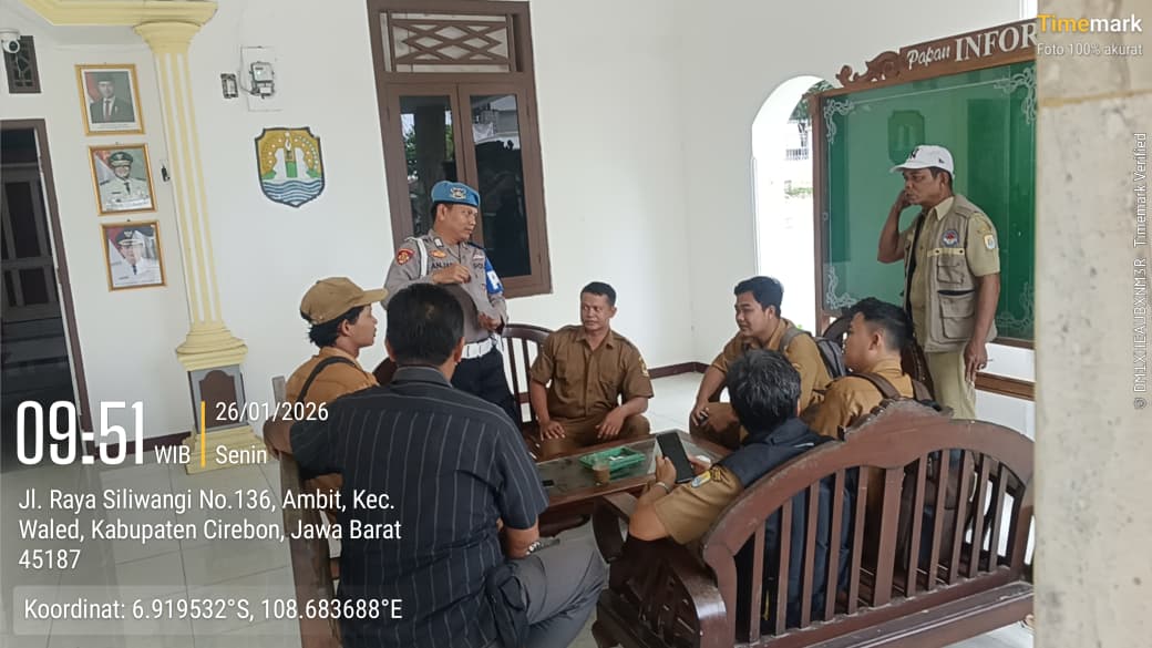 CIREBON – Dalam upaya menjaga situasi keamanan dan ketertiban masyarakat (kamtibmas) agar tetap kondusif, jajaran Polsek Waled Polresta Cirebon melaksanakan kegiatan sambang dialogis bersama perangkat Desa Ambit di Kantor Desa Ambit, Kecamatan Waled, Kabupaten Cirebon, Senin (29/1/2026) pagi.