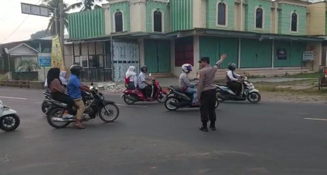 Gatur pagi hari ini dilaksanakan oleh Ka Spkt 2 Aiptu Oman dan Aipda Sofyan Zeno, mengingat banyak kendaraan yang lalu lalang melintas membuat arus lalu lintas cukup ramai. Namun dengan kehadiran personil Polri tersebut sehingga para pemakai jalan dapat dengan nyaman dan lancar.