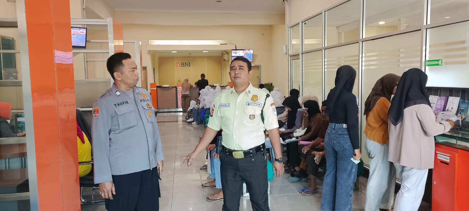 Dalam kegiatan tersebut Bripka Taufik Hidayat, SH menyampaikan himbauan dan pesan kamtibmas kepada siswa-siswi atau nasabah Bank BNI yang sedang mengantri pe nh gambilan bantuan dari pemerintah (PIP) Serta himbauan kepada satpam penjaga kantor BNI Kcp Losari untuk selalu waspada dan hati terhadap orang yang belum di kenal ataupun yang mencurigakan berada di sekitar Bank BNI.