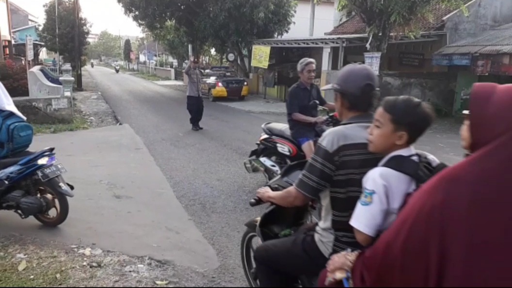 Personil Polsek Sedong Polresta Cirebon Aiptu Yaya Wardaya bersama Aiptu Agus Sudrajat dan Bripka Sutardi melaksanakan Pengaturan lalulintas diPerempatan jalan Pasar Sedong tepatnya Desa Sedonglor Kecamatan Sedong Kabupaten Cirebon.