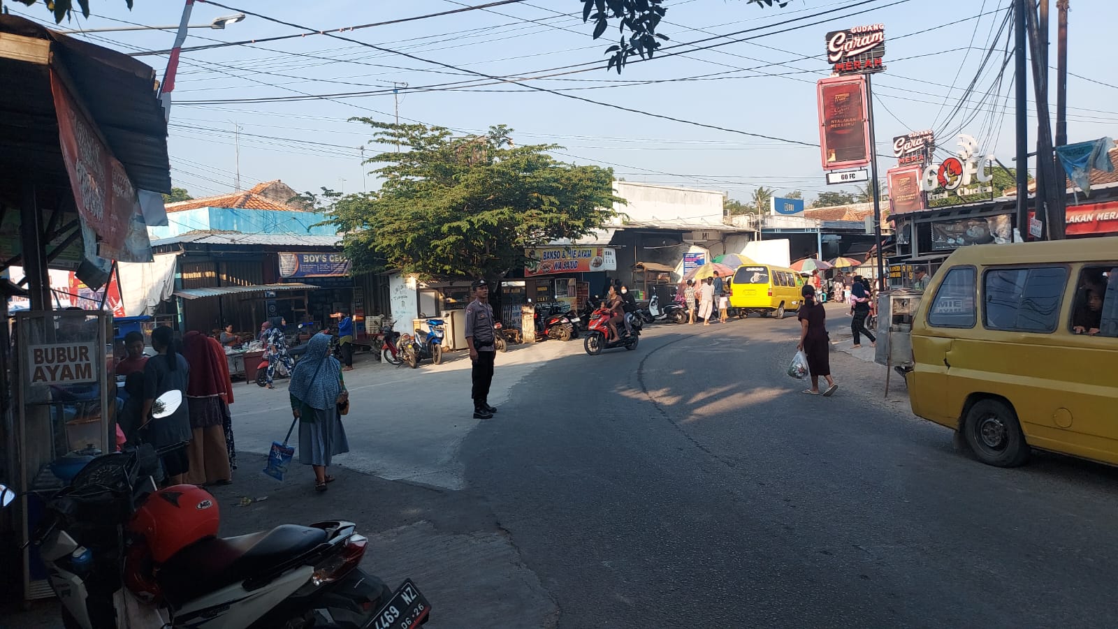 Sedong – Personil Polsek Sedong Polresta Cirebon Aipda Tarjim bersama Brigadir Susento dan Briptu Yoggi Iskandar melaksanakan Pengaturan lalulintas diPerempatan jalan Pasar Sedong tepatnya Desa Sedonglor Kecamatan Sedong Kabupaten Cirebon.