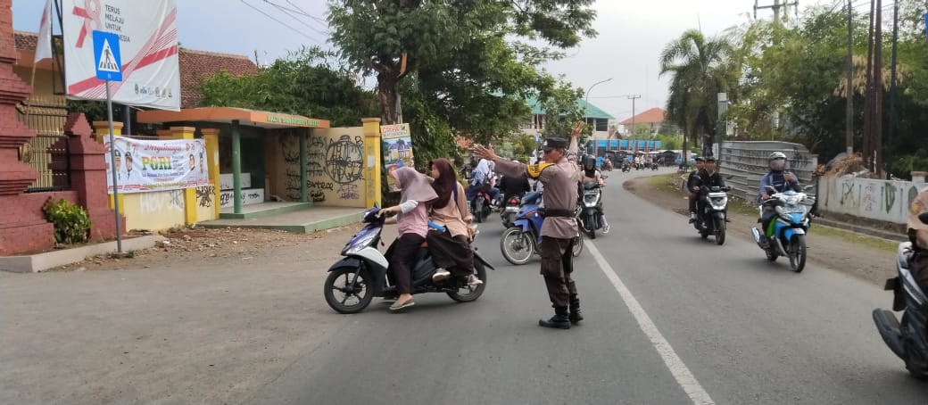KAB. CIREBON – Personil Polsek Waled melaksanakan kegiatan rutin di pagi hari yaitu Pengaturan lalulintas antisipasi giat masyarakat, dalam rangka menjamin arus lalu lintas yang lancar dan kondusif serta kamtibmas yang aman pada saat masuk nya jam pelajaran SMA negeri 1 Waled, Jum’at (01/12/2023).