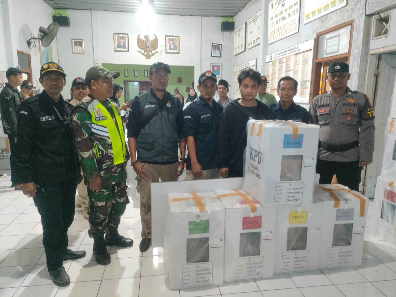 Karangsembung – Para Petugas Pam TPS di Wilayah Hukum Polsek Karangsembung Polresta Cirebon dibawah pimpinan Kapolsek Dukupuntang AKP Agus hemawan.,SH selaku Padal Pam, melaksanakan giat pengamanan dan pengawalan pendistribusian logistik Pemilu Ta. 2024. Rabu (14/02/2024)