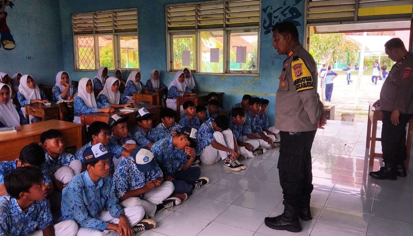 Gebang – 22 Februari 2024, Anggota Polsek Gebang Polresta Cirebon yang di pimpin langsung oleh Kapolsek Gebang Akp. Wawan Hermawan, S.H Melaksanakan Kegiatan pembinaan terhadap siswa-siswi sekolah SMPN 2 Gebang yang bertempat di Aula sekolah SMPN 2 Gebang termasuk Desa Dompyong Wetan Kecamatan Gebang Kabupaten Cirebon