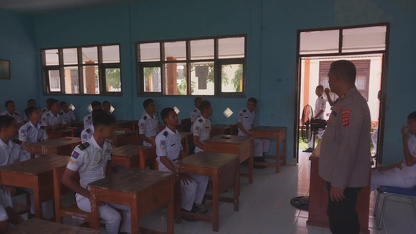 Kapolsek Gebang Polresta Cirebon Akp. Wawan Hermawan, S.H Melaksanakan Kegiatan penyuluhan dan Himbauan Kamtibmas terhadap siswa-siswi sekolah SMK N 1 Gebang yang bertempat di Aula sekolah SMK N 1 Gebang termasuk Desa Gebang iLir Kecamatan Gebang Kabupaten Cirebon