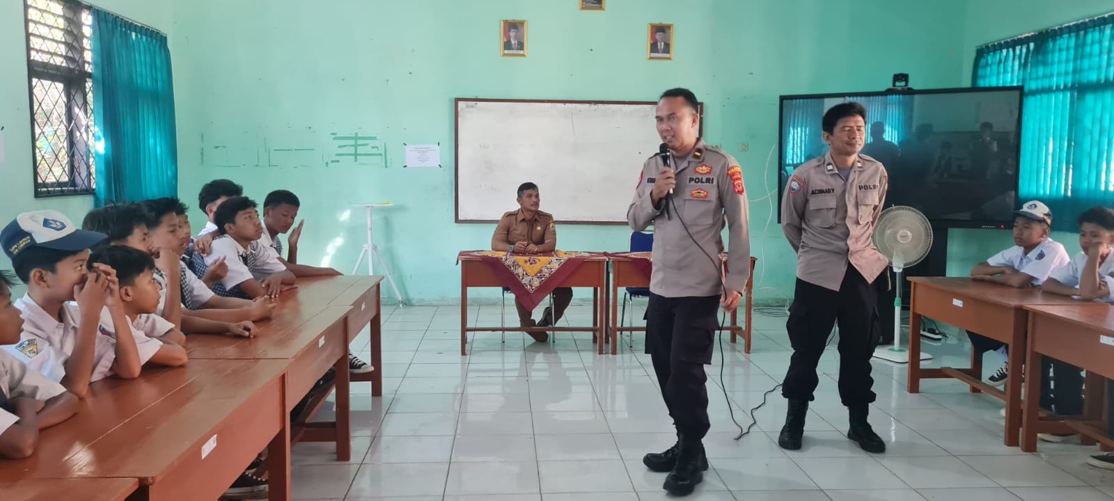 KAB. CIREBON – Wakapolsek Beber Polresta Cirebon Ipda Kusno KS. SH dan Ps Kanit Binmas Aiptu Achmad Yani baru saja melakukan kegiatan Police Goes To School yaitu pembinaan pelajar di SMPN 1 Beber. Dalam kegiatan ini, mereka memberikan pengarahan tentang larangan masuk ke dalam Geng Motor dan larangan mengendarai kendaraan bermotor baik itu roda dua maupun roda empat. Beber (06/08/2024)