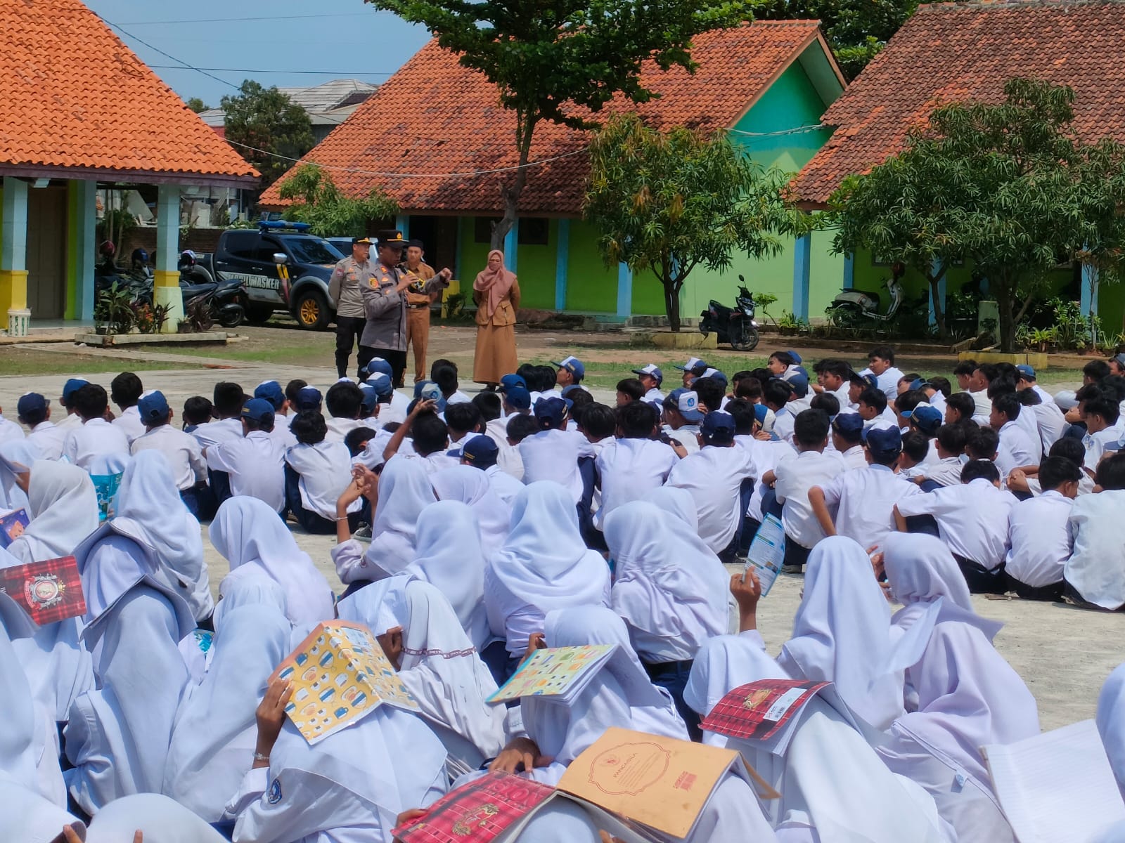 Saat kunjunganya ke Sekolah, Kapolsek Memberikan sedikit materi kepada pelajar untuk menjauhi kenakalan remaja, yang telah di sampekan hal itu makin banyaknya tindak kriminalitas yang dilakukan oleh kaum pelajar.