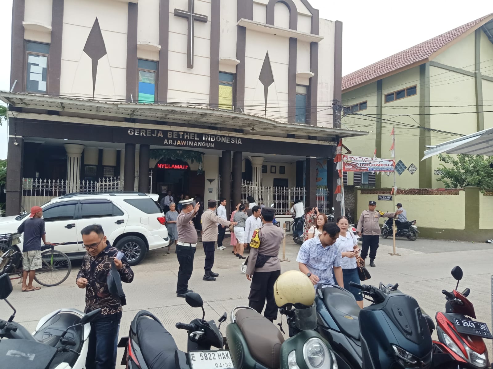 KAB. CIREBON – , Polsek Arjawinangun Polresta Cirebon  mengamankan   kegiatan  kebaktian ibadah yang bertempat  di GBI (Gereja Bethel Indonesia ) Arjawinangun, kegiatan pengamanan  tersebut bertujuan untuk  memberikan rasa aman dan nyaman  kepada umat Nasrani yang sedang melaksanakan kebaktian  ibadah Raya 1, adapun  kegiatan ibadah kebaktian rutin di laksanakan  setiap Minggu pagi di mulai pukul 06.30 Wib sampai dengan selesai dengan jumlah Jemaat yang hadir sekitar 50 Orang dari wilayah Kecamatan Arjawinangun.