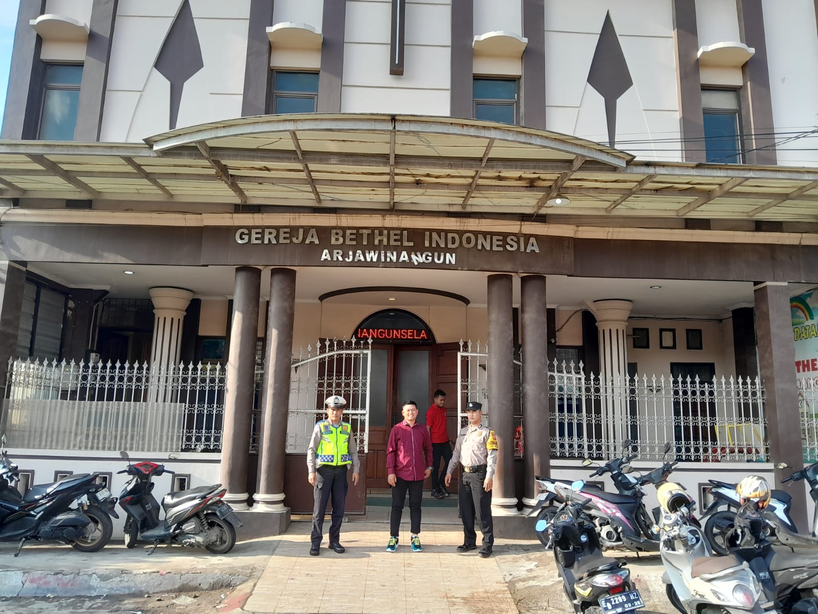 Cirebon – Ciptakan Kamtibmas yang aman Polsek Arjawinangun Polresta Cirebon hadir untuk amankan kegiatan kebaktian ibadah Raya 1 yang bertempat di gereja GBI Arjawinangun, dalam kegiatan pengamanan tersebut guna memberikan rasa aman kepada umat Nasrani yang sedang melaksanakan kebaktian ibadah Raya 1.