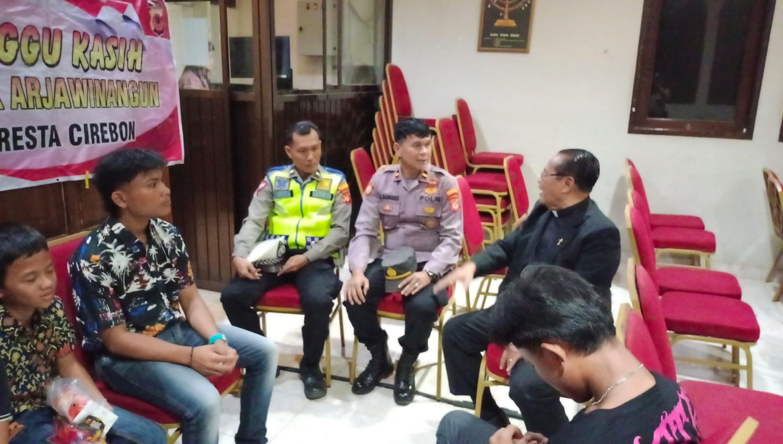 Cirebon – Guna menampung aspirasi warga Polsek Arjawinangun Polresta Cirebon gelar Minggu kasih, kegiatan tersebut merupakan salah satu untuk menampung saran maupun masukan dari warga masyarakat, oleh karena itu Polsek Arjawinangun gelar Minggu kasih yang bertempat di Gereja Bethel Indonesia (GBI) Arjawinangun termasuk Desa Jungjang Kecamatan Arjawinangun Kabupaten Cirebon, adapun maksud dan tujuan di gelarnya Minggu kasih tersebut untuk menampung semua aspirasi semua umat Nasrani, kegiatan minggu kasih bersama Polsek Arjawinangun tersebut di pimpin oleh Panit 1 Samapta IPDA K.Bangun beserta anggotanya, dalam kesempatan tersebut juga di hadiri juga oleh pendeta David Mardianto MA, pengurus gereja serta umat Nasrani Gereja Bethel Indonesia (GBI) Arjawinangun, dalam kegiatan Minggu Kasih menyampaian kepada Pendeta, Pengurus Gereja serta umat Nasrani Bahwa pada pagi hari bisa bertemu bapak pendeta, pengurus gereja serta umat Nasrani di gereja GBI Arjawinangun dalam rangka jalin tali silaturahmi, dan kita bisa bertemu dalam rangka saran dan keluhan serta aspirasi dari masyarakat khususnya para Jamaah Gereja GBI Arjawinangun, bilamana ada permasalahan – permasalahan Kamtibmas yang menjadi masukan dan saran saya ingin berkenan langsung dari para Jamaah untuk Kamtibmas yang Kondusif di Desa Jungjang, umumnya di Kecamatan Arjawinangun, Kabupaten Cirebon.