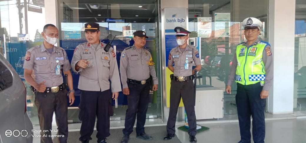 KAB.CIREBON – Dalam rangka tercipta Kamtibmas yang aman kondusip di area kantor Bank BJB Arjawinangun, Panit 1 Binmas IPDA Aan A beserta anggotanya menyambangi Satpam Bank BJB Arjawinangun serta Juru parkir yang ada di lokasi tersebut, dalam sambangnya Panjt 1 Binmas IPDA Aan A memberikan himbauan himbauan Kamtibmas kepada Satpam serta juru parkir agar selalu waspada dan selalu berhati hati dalam menjalankan tugas di area kantor BJB tersebut, serta selalu waspada karena pelaku kejahatan selalu mengintai korbannya yang lengah, para Satpam harus benar benar jeli terhadap nasabah yang datang ke area kantor Bank serta parkiran yang ada di lokasi tersebut harus benar benar teliti karena pelaku curanmor juga mencari kelengahan para juru parkir yang ada di lokasi tersebut benar benar lengah, oleh karena itu guna mencegah jangan sampai terjadi kejadian kriminalitas Panit Binmas selalu memberikan himbauan Kamtibmas pada saat patroli,Jum’at (02/06/2023).