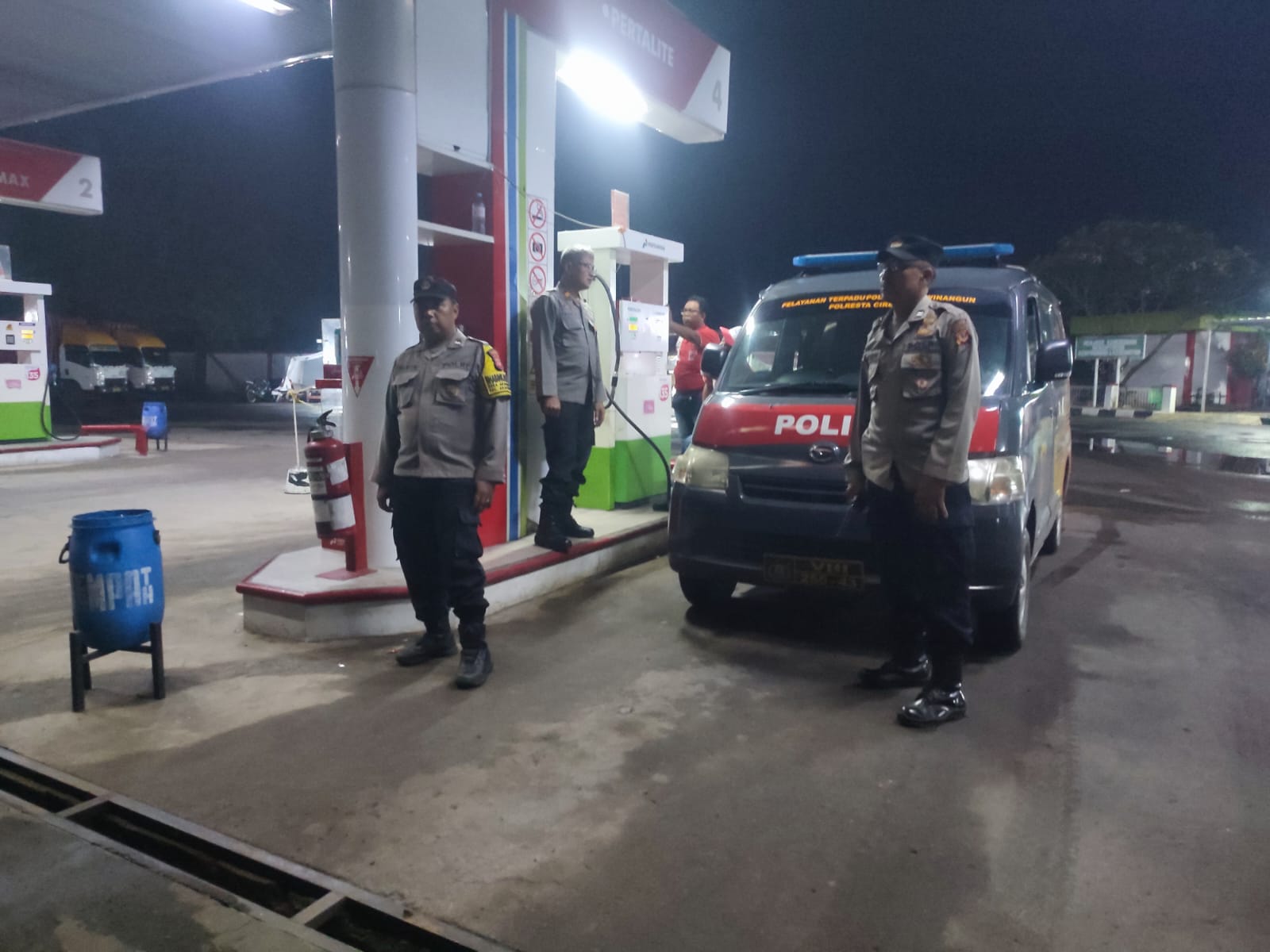 Selain fokus pada pencegahan kejahatan konvensional, patroli malam juga menyasar objek vital, khususnya SPBU Rawagatel yang berlokasi strategis di pinggir jalan By.Pass Rawagatel, Desa Rawagatel, Kecamatan Arjawinangun, Kabupaten Cirebon. Kehadiran petugas di area SPBU ini bertujuan untuk memonitor secara langsung guna menciptakan situasi yang aman dan kondusif. Anggota Polsek Arjawinangun mengamati setiap kendaraan yang sedang melakukan pengisian bahan bakar dan secara aktif berdialog dengan pengendara, menyampaikan pesan-pesan Kamtibmas (Keamanan dan Ketertiban Masyarakat).