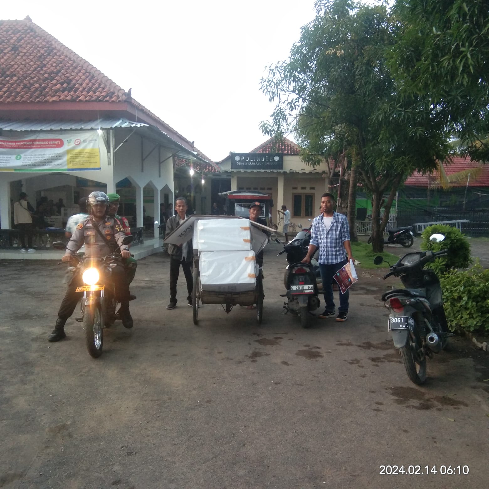 Pengamanan dan pengawalan pergeseran Logistik pemilu 2024 dari PPS Desa Sekecamatan Babakan menuju TPS di Kawal dan di amankan oleh petugas BKO, Bhabinkamtibmas, Babinsa dan personil Polsek Babakan Polresta Cirebon