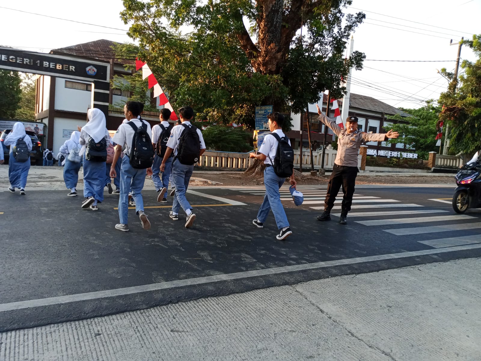 Beberapa sekolah yang berada di pinggir jalan, seperti SDN 1 Beber, SDN 2 Beber, SMPN 1 Beber dan SMAN 1 Beber, menjadi fokus utama pengaturan lalu lintas pagi ini. Personel Polsek Beber pun turun ke lapangan dengan membagi tugas antara petugas keamanan sekolah dengan pengatur lalu lintas yaitu anggota polsek yang di jalan raya yang menjadi akses masuk ke sekolah-sekolah tersebut.
