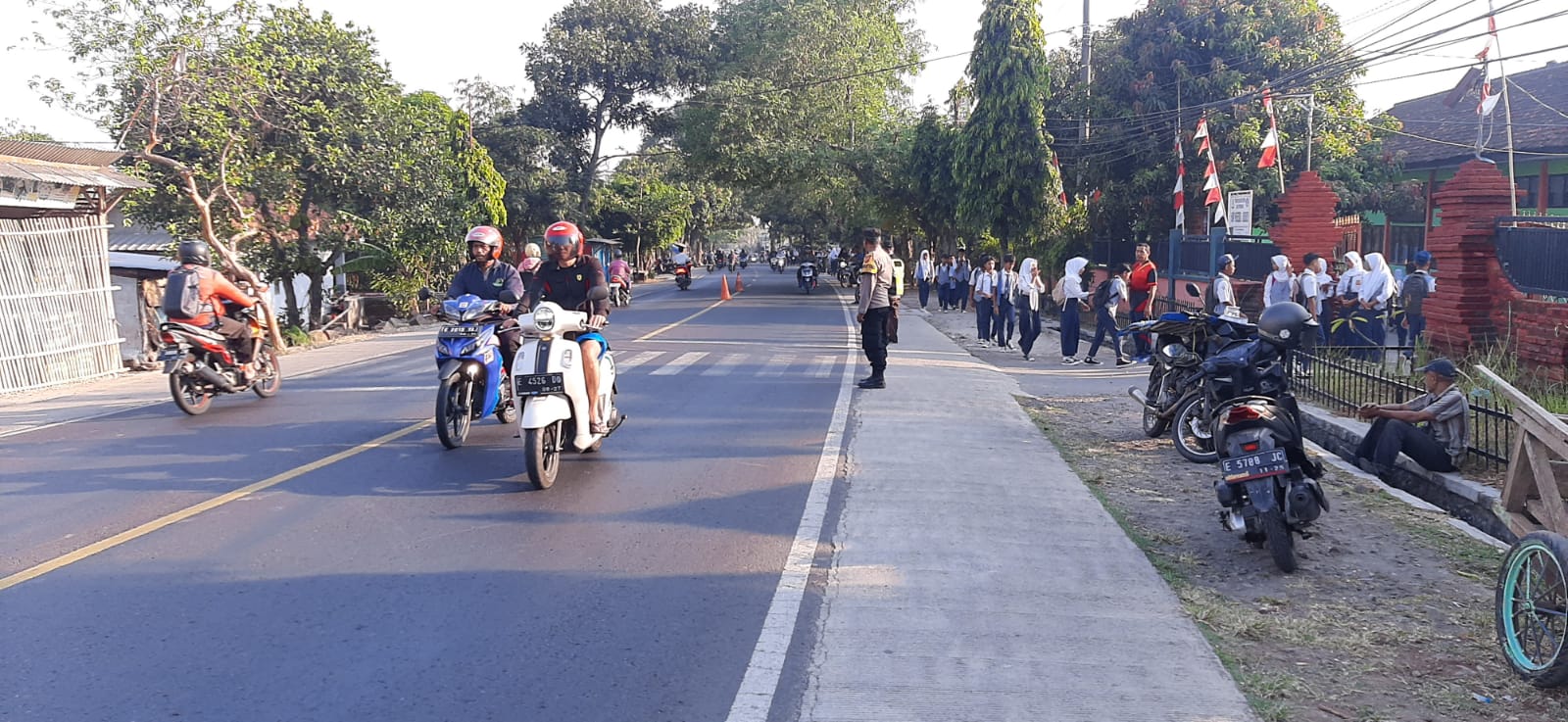 KAB. CIREBON –  Polsek Beber Polresta Cirebon dalam hal ini anggota Patroli Polsek Beber melaksanakan pengaturan pagi si depan SMPN 1 N Beber, Selasa (17/10/2023).